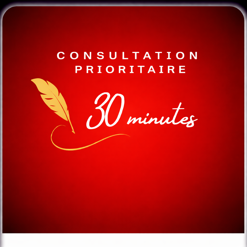 Dans le cadre exclusif d'une demande prioritaire, une consultation de 30 mn (soit un domaine) ou 1h (tous domaines) a été mise en place avec une tarification spéciale pour vous éclairer et vous aider à prendre votre décision. Le rendez-vous qui vous sera proposé dans un bref délai se fera sur mon temps personnel.